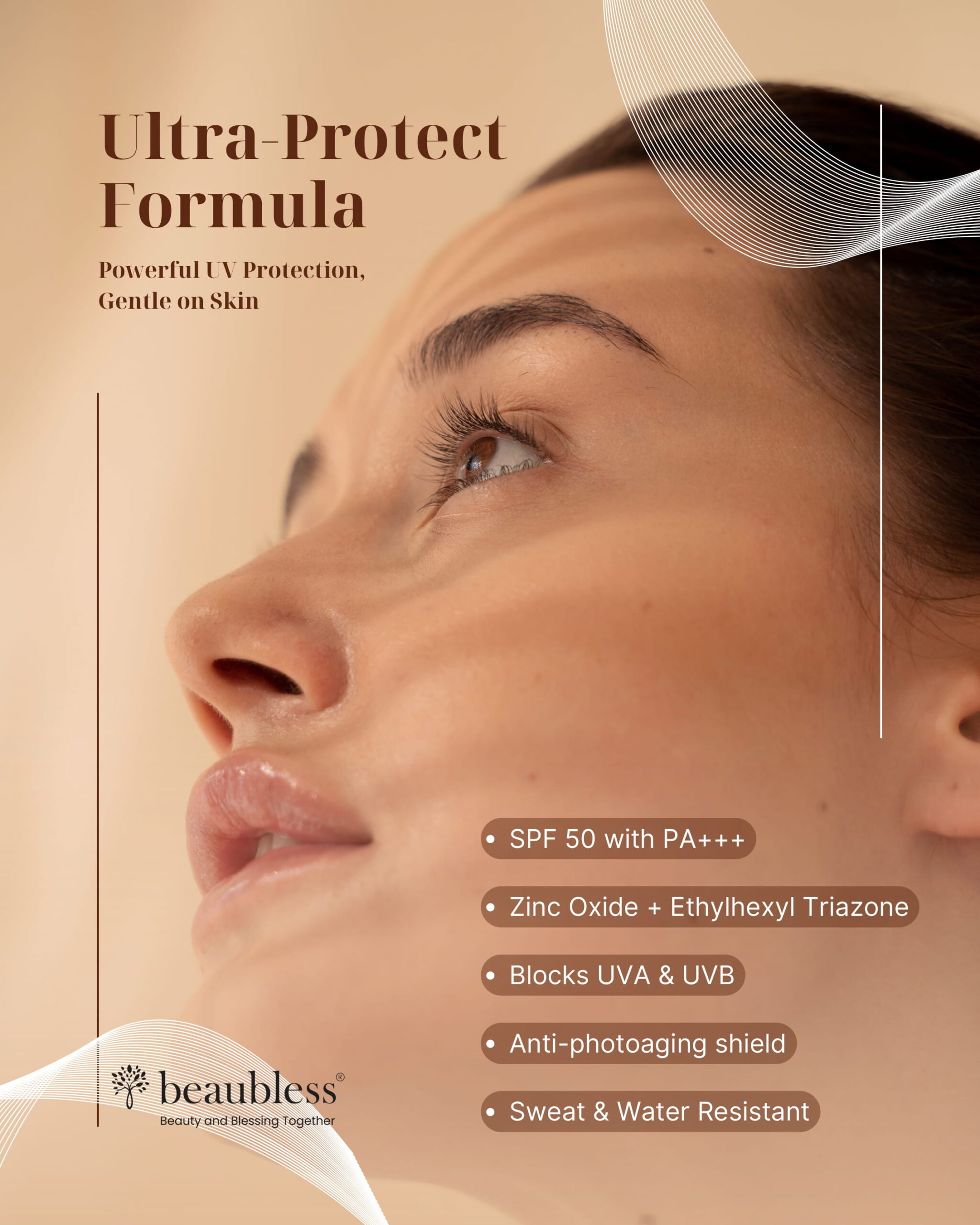 • Broad Spectrum SPF 50 PA++ Protection: Shields your skin from harmful UVA and UVB rays, helping prevent sunburn, tanning, and early signs of aging.